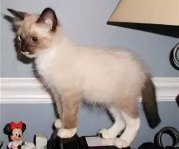 毛色:体毛为均匀的单色,但允许海豹色斑点。蓝色斑点上有少量阴影色。体毛色应与斑点色对比明显。所有特征部位(鼻端、四肢、耳朵、尾巴)斑点均为同一色,斑点中应无交驻混杂毛色和白色。