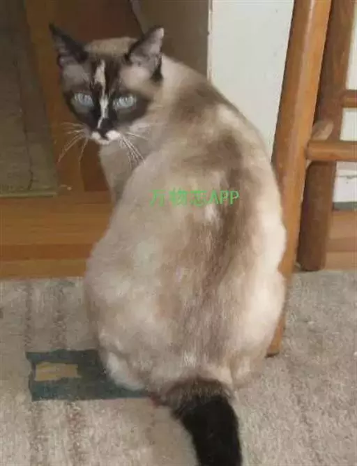 (3)巧克力色斑点:身体为象牙色,脸、耳、腿、脚、尾为巧克力色,鼻子为褐色。