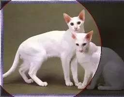 头细长呈楔形。头盖平坦,从侧面看,头顶部至鼻尖成直线。脸形尖而呈V字形,口吻尖突呈锐角,从吻端至耳尖形成V字形。鼻梁高而直,从鼻端到耳尖恰为等边三角形。两颊瘦削,齿为剪式咬合。耳朵大,基部宽,耳端尖、直立。眼睛大小适中,杏仁形,为蓝色,或深或浅。从内眼角至眼梢的延长线,与耳尖构成V字形。眼微凸。尾长而细,尾端尖略卷曲。长度与后肢相等。柔韧性好,肌肉发达,身材苗条,长得棱角分明,腿细而长。掌很小,呈椭圆形。尾巴长而美丽,尾端尖。
