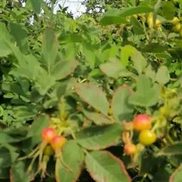 刺蔷薇:灌木,高1-3米;小枝圆柱形,稍微弯曲,红褐色或紫褐色,无毛,有细直皮刺。小叶片宽椭圆形或…