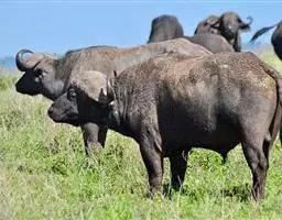 非洲野水牛:共有5个亚种。头体长2.1-3.4米,身高1-1.7米,体重300-900千克。胸膛宽…