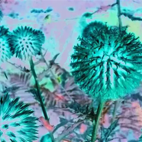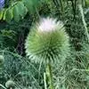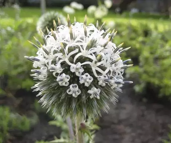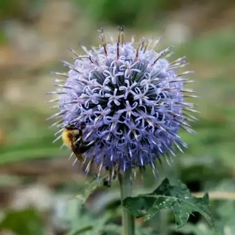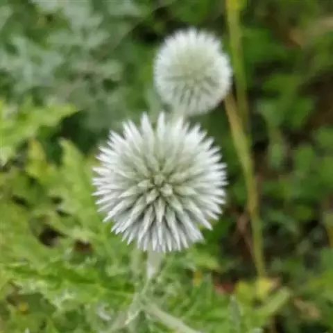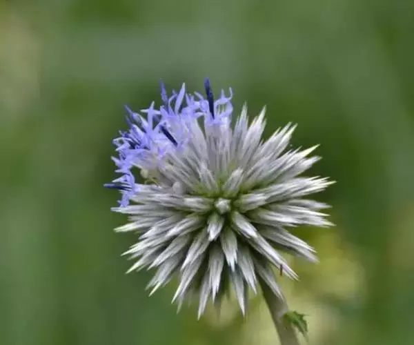 多年生草本,高30-60厘米。茎直立,基部有残存的纤维状撕裂的褐色叶柄,下部被稀疏的蛛丝状绵毛或无毛,向上及接复头状花序下部灰白色,被稠密或密厚的蛛丝状绵毛,不分枝或基部有1-2个短的花序分枝。基生叶与下部茎叶椭圆形、长椭圆形或披针状椭圆形,长15-20厘米,宽8-15厘米或更大,长达35厘米,宽达18厘米,通常有长叶柄,柄基扩大贴茎或半抱茎,二回羽状分裂,一回为深裂或几全裂,一回侧裂片4-8对,披针形、椭圆形、披针状椭圆形或宽卵形,中部侧裂片较大,向上向下渐小,二回为深裂或浅裂,二回裂片长椭圆形、斜三角形或披针形,顶端针刺状长渐尖,边缘少数三角形刺齿或通常无刺齿。中上部茎叶与基生叶及下部茎叶同形并近等样分裂。上部茎叶羽状半裂或浅裂,无柄,基部扩大抱茎。全部茎叶质地薄,纸质,两面异色,上面绿色,无毛或被稀疏蛛丝毛,下面灰白色,被密厚的蛛丝状绵毛。复头状花序单生茎顶或茎生2-3个复头状花序,直径3-5.5厘米。头状花序长1.9厘米。基毛白色,不等长,扁毛状,长约7毫米,长为总苞长度的2/5。总苞片14-17个,外层苞片稍长于基毛,线状倒披针形,上部菱形或椭圆形扩大,边缘有长缘毛,顶端短渐尖;中层倒披针形,长1-1.3厘米,自最宽处向上突然收窄成针刺状长渐尖,边缘有稀疏短缘毛;内层长椭圆形,长1.5厘米,上部边缘有短缘毛,顶端刺芒状渐尖。全部苞片外面无毛。小花蓝色,花冠裂片线形,花冠管上部有多数腺点。瘦果长7毫米,被稠密的顺向贴伏的淡黄色长直毛,遮盖冠毛。冠毛量杯状,长1.2毫米,冠毛膜片线形,边缘糙毛状,中部以下结合 花果期6-9月。