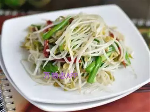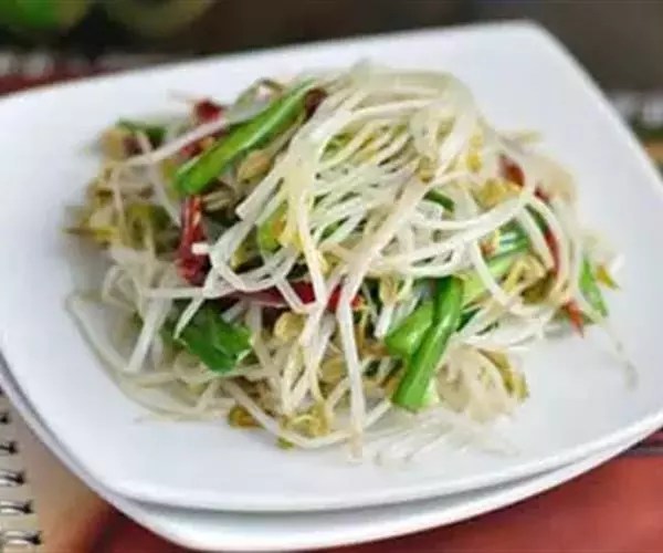 炒豆芽是一道美味的菜肴,营养丰富。通过炒制,使豆芽变熟,而成为一道家常菜。制作原料有豆芽、葱等。口味鲜美,老少皆宜。