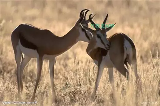 草丛中当所有跳羚的注意力都集中在角斗上时,狮子便有了难得的机会。狮子通常更喜欢吃长角羚一类较大的动物。但此时,使它动心的是角斗的双方。一只警觉的跳羚发出了警报。狮子明白,订餐被取消了。整个跳羚群腾跃起来。跳羚有一种与众不同的腾跳方式,似乎表明要抓住它们是何等不易。