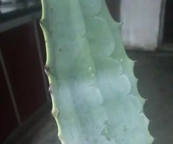 长0.2-0.5米,宽3-8(-12)厘米,棱常翅状,边缘波状或圆齿状,深绿色至淡蓝绿色,无毛,老枝边缘常胼胀状,淡褐色,骨质;小窠沿棱排列,相距3-5厘米,直径约2毫米;每小窠具1-3根开展的硬刺;刺锥形,长2-5(-10)毫米,灰褐色至黑色。