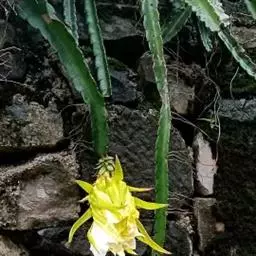 量天尺(Hylocereus undatus (Haw.) Britt. et Rose)仙人掌科攀援植物,具气根。分枝多数,深绿色至淡蓝绿色,无毛,老枝淡褐色;花漏斗状,于夜间开放;花托及花托筒密被淡绿色或黄绿色鳞片;花丝黄白色;花药淡黄色;花柱黄白色,线形。花可作蔬菜,亦称为"霸王花"。浆果红色,果脐小,果肉白色。种子倒卵形,黑色,种脐小,浆果可食。花期7-12月。