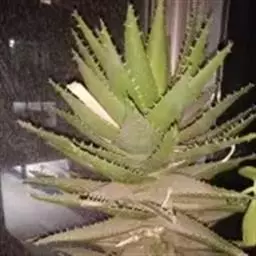 翡翠殿(Aloe squarrosa)。多年生肉质植物,百合科芦荟属。原产地南非。叶片互生,旋列于茎顶,叶螺旋状互生,叶三角形,淡绿色至黄绿色,叶缘有白色的白齿,夏季开花。