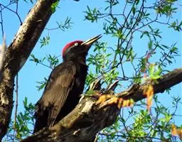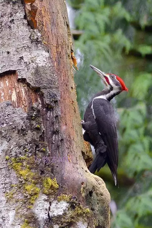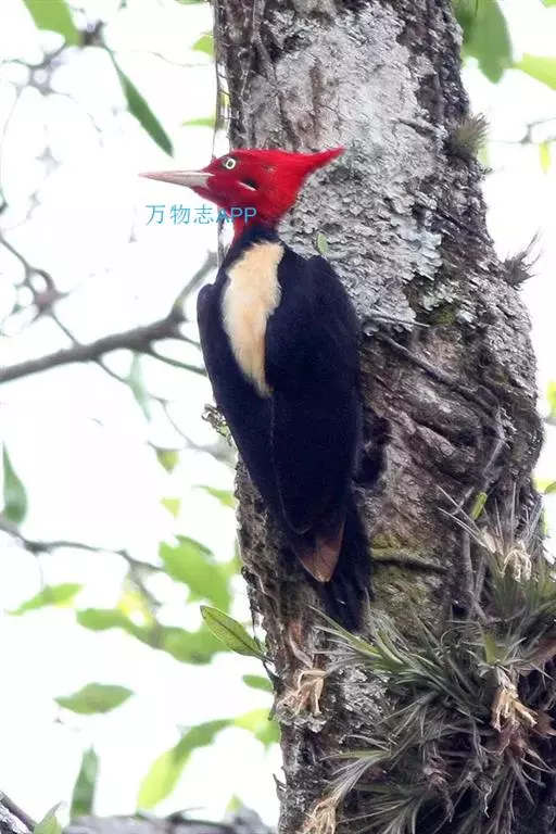 白腹黑啄木鸟,是啄木鸟科、黑啄木鸟属的中型鸟类,体长43-46厘米,头顶具长的红色羽冠,颚纹亦为红色,…