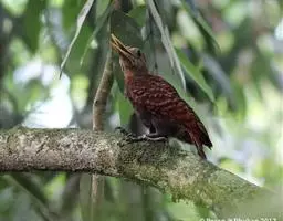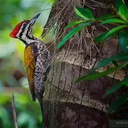 白腹黑啄木鸟(学名:Dryocopus javensis),是啄木鸟科、黑啄木鸟属的中型鸟类,体长43-46厘米,头顶具长的红色羽冠,颚纹亦为红色,其余头、颈、胸和上体黑色,腰和腹白色,飞翔时白色腋羽和翅下覆羽亦明显可见。雌鸟头顶黑色,亦无红色颚纹。