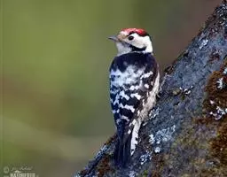 大斑啄木鸟隶属鸟纲鴷形目啄木鸟科。雄鸟头顶黑色,枕部红色,眼先、颊部和耳羽白色,颈部污白色,…