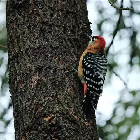 星头啄木鸟是䴕形目啄木鸟科啄木鸟属鸟类,又称北啄木鸟、红星头喯打木、红星啄木等。头顶灰褐色,虹膜褐色,…