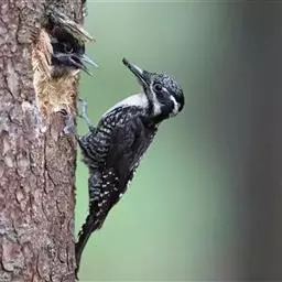 三趾啄木鸟,是啄木鸟科、啄木鸟属的小型鸟类,体长20-23厘米,雄鸟头顶金黄色,雌鸟黑色而具白色斑点。…