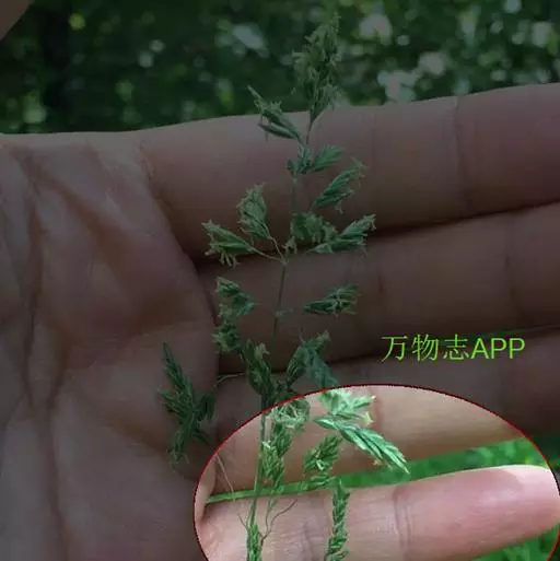 圆锥花序宽卵形,长3-7厘米,开展;分枝1-3枚着生各节,平滑;小穗卵形,含3-5小花,长3-6毫米,绿色;颖质薄,具宽膜质边缘,顶端钝,第一颖披针形,长1.5-2(-3)毫米,具1脉,第二颖长2-3(-4)毫米,具3脉;外稃卵圆形,顶端与边缘宽膜质,具明显的5脉,脊与边脉下部具柔毛,间脉近基部有柔毛,基盘无绵毛,第一外秤长3-4毫米;内稃与外稃近等长,两脊密生丝状毛;花药黄色,长0.6-0.8毫米。
