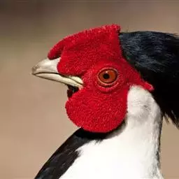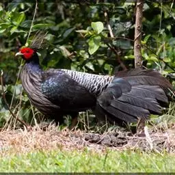 白颈长尾雉:大型鸡类,体长81厘米,体型大小和雉鸡相似。雄鸟头灰褐色,颈白色,脸鲜红色,其上后缘有…