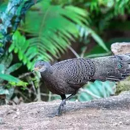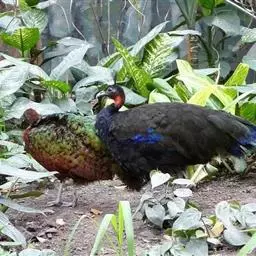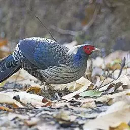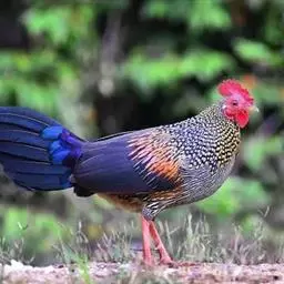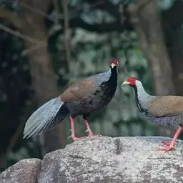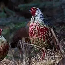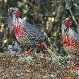 血雉雉科血雉属鸟类,别名血鸡、松花鸡,血雉的雄鸟大覆羽、尾下覆羽、尾上覆羽、脚、头侧、腊膜为红色,…