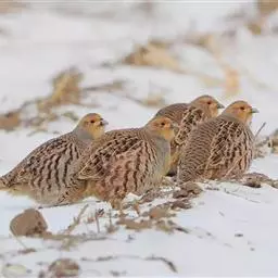 体大的灰褐色鹑类。胸灰色具黑色细纹。与相似种类四川雉鹑不同处在于栗色喉块外缘近白。有猩红色眼周裸皮。…