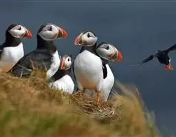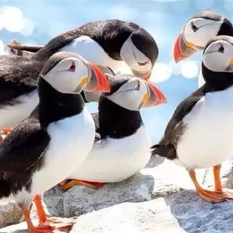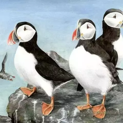 角海鹦:是鸻形目海雀科的鸟类,体重581-648克,体长约32厘米,翼展18-20厘米。是一种身体…