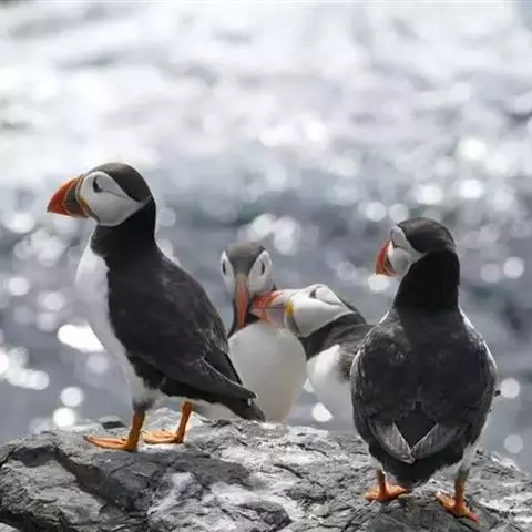 角嘴海雀,是海雀科、角嘴海雀属的中型海鸟,体长32-41厘米,嘴短而粗呈圆锥状、橙色。夏羽上嘴基部…