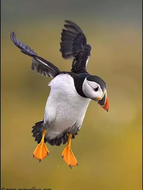 白腹海鹦,前趾间有蹼膜,后趾缺如。翅窄而短小,尾短。体羽黑白二色,雌雄羽色相似