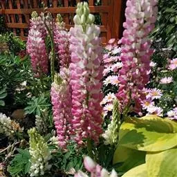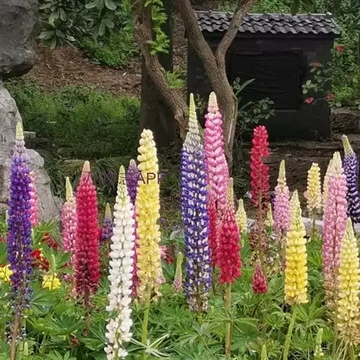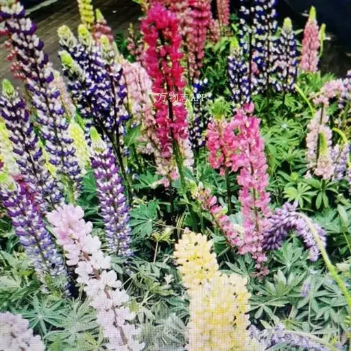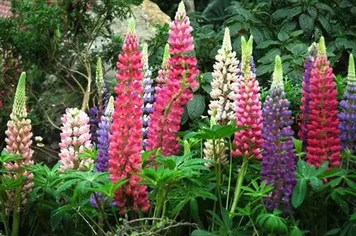 羽扇豆俗称鲁冰花,花序挺拔、丰硕,花色艳丽多彩,有白、红、蓝、紫等变化,而且花期长,可用于片植或在带状花坛群体配植,同时也是切花生产的好材料。