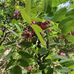 种子间节荚状;有种子3-4粒。种子卵形,扁平,黄色,具棕色或红色斑纹,光滑。花期3-5月,果期4-7月。 [2-3]