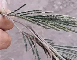 (1)苗田管理 当幼苗出齐后,进行2-3次间苗,播种当年按10-15厘米定苗,5-6月份追施适革的硫酸铵或稀释的入粪尿,7-8月间注意除草、松土。每亩育苗圃场使用25%除草醚0.75千克,施用时除草剂中掺混适量的湿润细土,然后撒到幼苗四周,应用化学除草剂,效果好,节省劳力。