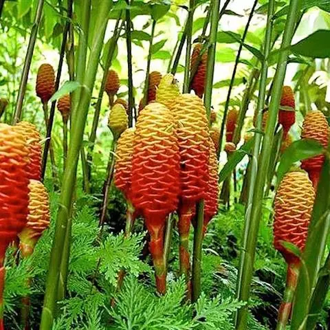 珊瑚姜是姜科、姜属植物。株高近1米。叶片长圆状披针形或披针形,长20-30厘米,宽4-6厘米,…