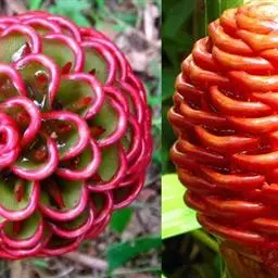 红球姜(学名:Zingiber zerumbet (L.) Smith)是姜科姜属多年生草本植物,根茎块状,株高可达2米。叶片披针形至长圆状披针形,无柄或短柄;总花梗长可达30厘米,花序球果状,顶端钝,苞片覆瓦状排列,紧密,近圆形,初时淡绿色,后变红色,边缘膜质,花萼膜质,花冠管纤细,裂片披针形,淡黄色,唇瓣淡黄色,侧裂片倒卵形,蒴果椭圆形,种子黑色。7-9月开花,10月结果。