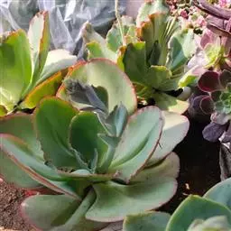 观赏,特征是小巧的株形和橙粉色叶缘。极易生侧芽,多年生植株可形成壮观的大型群落。