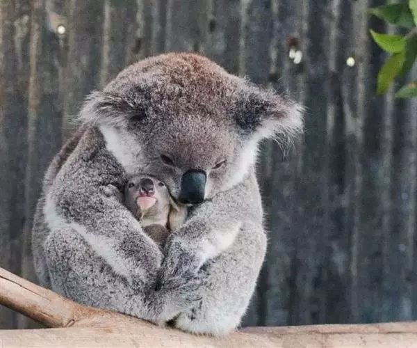 树袋熊体态憨厚,长相酷似小熊,有一身又厚又软的浓密灰褐色短毛,胸部、腹部、四肢内侧和内耳皮毛呈灰白色。成年雄性考拉白色胸部中央具有一块特别醒目的棕色香腺。分布在南部的考拉,因为需要适应较寒冷的气候 考拉熊母子 而拥有较大的体重和较厚的皮毛。厚厚的皮毛有利保持温度的恒定,下雨时可以避免身体遭受潮气和雨水的侵扰。