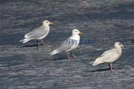 灰翅鸥,夏羽头、颈、腰、尾白色;肩、背和翅上覆羽鸽灰色。冬羽和夏羽相似,但头和颈具淡褐色纵纹,有时…