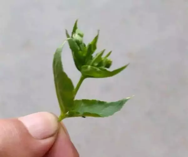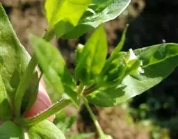 二年生或多年生草本,具须根。茎上升,多分枝,长50-80厘米,上部被腺毛。叶片卵形或宽卵形,长2.5-5.5厘米,宽1-3厘米,顶端急尖,基部稍心形,有时边缘具毛;叶柄长5-15毫米,上部叶常无柄或具短柄,疏生柔毛。