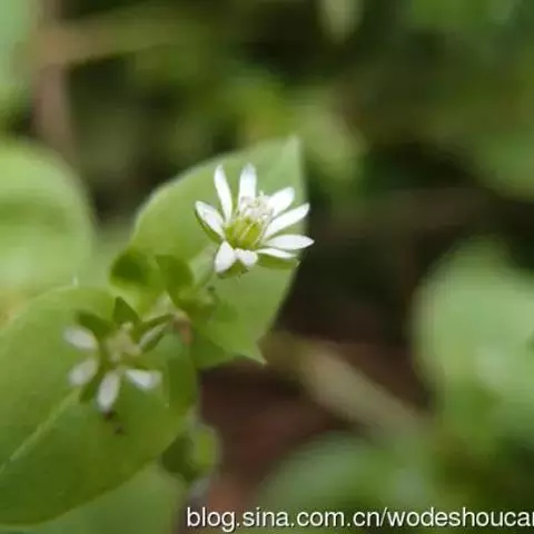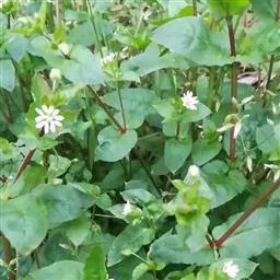 鹅肠菜(学名:Myosoton aquaticum (L.) Moench)是石竹科,鹅肠菜属二年生或多年生草本植物,具须根。茎上升,多分枝,长可达80厘米,叶片卵形或宽卵形,顶端急尖,基部稍心形,顶生二歧聚伞花序;苞片叶状,花梗细,花后伸长并向下弯,萼片卵状披针形或长卵形,花瓣白色,裂片线形或披针状线形,子房长圆形,花柱短,线形。蒴果卵圆形,种子近肾形,5-8月开花,6-9月结果。