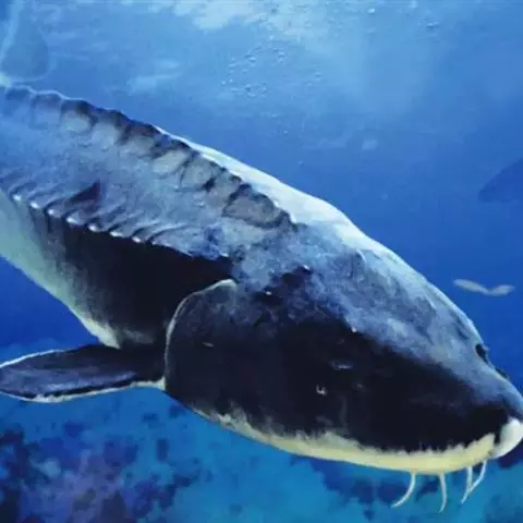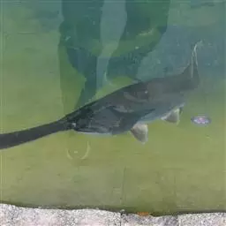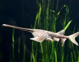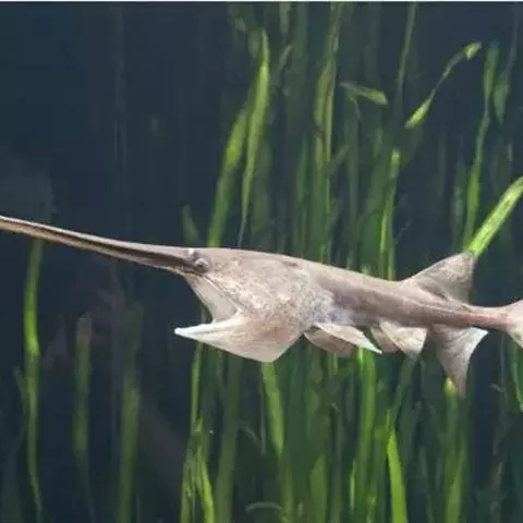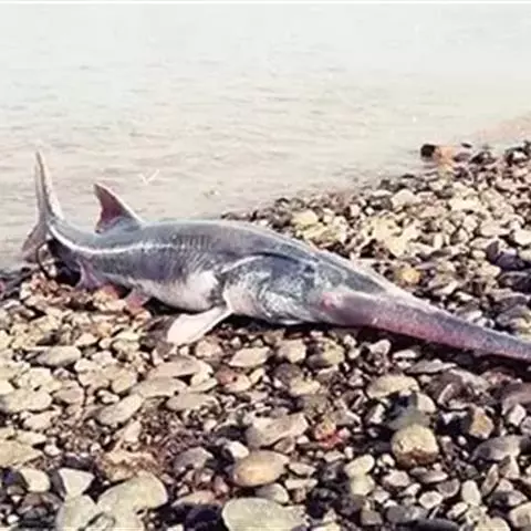 白鲟(学名:Psephurus gladius):体长为2-3米,体重200-300千克,最大的体长可达7.5米。又称作中华匙吻鲟,和生活在密西西比河的匙吻鲟同属匙吻鲟科的物种。另名为中国剑鱼,是中国最大的淡水鱼类。因为其吻部长状如象鼻,又俗称为象鱼。体长梭形,上下颌均具尖细的齿,吻长剑状,其长为眼后头长的1.5-1.8倍,吻部由前到后逐渐变宽,前端钝尖,狭而平扁,基部肥厚。体无骨板状大硬鳞;仅在尾鳍上缘有一列棘状鳞,背部浅紫灰色、腹部及各鳍略呈白粉色。