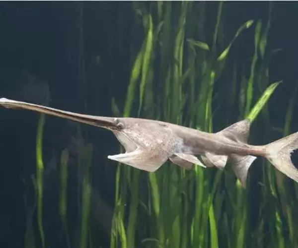 现生白鲟(Psephurus gladius Chinese Paddlefish),又称象鱼,是一种古老的鲟鱼类,属鲟形目、匙吻鲟科,为仅存的两种匙吻鲟科鱼类之一,生活于中国长江流域中上游,属于中国国家一级保护动物。白鲟头部特长,占体长的1/3,小个体约占体长的1/2,布有梅花状的感觉器——陷器。吻延长,呈剑状,其腹面具短须一对。眼甚小。口大,下位,弧形,上下颌均具细齿。鳃孔大,鳃膜後缘尖。体表光滑无鳞。栖息于江河中下层,有时进入大型湖泊。白鲟是长江中仅次于中华鲟的大型古老鱼类,长可达二三米以上.由于生态环境恶化,白鲟分布区逐渐缩小,数量逐年减少,个体越来越小。白鲟濒危状况已不亚于大熊猫,若不采取有效措施加以保护,用不了几年它可能永远消失。