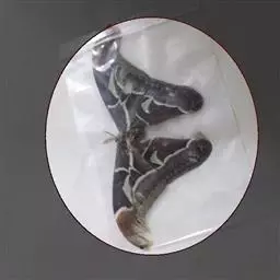 右图是辽西刘氏原白鲟(Protopsephurus liui)。产于辽西凌源大王杖子乡范家村二道梁山。软骨鱼类,属鲟目,白鲟科体型略扁平,头大三角形,嘴尖而长呈剑状,其吻长.口大下位,能伸缩,口前具短须一对。眼小,体裸露,软骨很少骨化,尾为三角形。背鳍在腹鳍之後,尾鳍正型,尾鳍上有棱状鳞,体形一般较大。吻部向前逐渐变窄,前端呈铲状成鲟约1.2米。白鲟生活于白垩纪早期(距今1.22亿年前122.2 -0.2Ma to 122.5 -0.3Ma,)的内陆湖泊。化石当前大多发现于辽西北票的义县组火山沉积夹层。