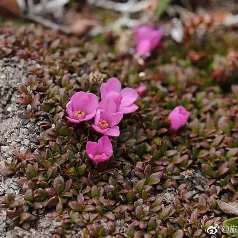 岩匙是多年生草本植物,高10-25厘米;根状茎粗壮,木质,几直立,稍弯曲,褐色或暗褐色,直径3-4毫米,密被阔卵形鳞片,鳞片黑褐色,不透明,具纵脉,先端渐尖,,无毛;顶端发出5-10(-13)片成莲座状的叶丛。叶基生,革质,倒卵状匙形或椭圆状匙形,中部以上最宽,长3-10厘米,宽1.7-4厘米,先端钝,具凸尖头,向基部渐狭成楔形,并向下延于叶柄,无毛,上面深绿色,常具光泽,通常平滑,下面灰绿色或灰白色,全缘,反卷,侧脉2-4对,上面不明显或显著下陷,网状脉在上面有时可见;叶柄伸长,稍比叶片长或稍短,长短不规则。花葶长度往往等于叶或稍短于叶,花后伸长,有时可达23厘米,有花5-12朵,组成伞形状总状花序;花梗长3-11厘米,常红色,微具短柔毛,基部有1大苞片,中部有2小苞片,苞片对生或互生,几膜质,披针形或线状披针形,长4-7毫米;花白色,两性,整齐;萼片5,分离,阔椭圆形或卵状披针形,长4-5毫米,先端钝或圆,淡红色,具9-11纵脉,全缘,宿存;花冠钟状,深5裂,裂片舌状或矩圆形,膜质,长9-10毫米,先端圆,全缘,花后脱落;雄蕊5,生于花冠基部,与裂片互生,花丝较宽,边缘膜质,下部微具髯毛,与花冠裂片等长或稍超过,花药近圆形,2室,深裂,每室纵裂成肾形;退化雄蕊5,短,膜质,舌状或长圆形,具髯毛,白色,与花冠裂片对生;子房扁球形,微被毛,3室,每室具多数胚珠,花柱单一,直立,圆柱形,不超过雄蕊(在果期伸长,长可达9毫米),柱头小,盘状,微浅3裂。蒴果圆球形,直径3毫米,包被于绿色革质的花萼内,室背开裂。花期4-6月;果实8-9月。