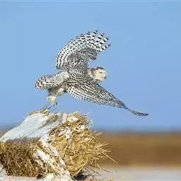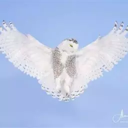 雪鸮(学名:Bubo scandiaca)是鸱鸮科的一种大型猫头鹰,头圆而小,面盘不显著,没有耳羽簇。嘴的基部长满了刚毛一样的须状羽,几乎把嘴全部遮住。虹膜金黄色,嘴铅灰色或角褐色,爪基灰色,末端黑色。它的羽色非常美丽,通体为雪白色,也有的时候布满暗色的横斑。