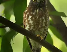 雌鸟和雄鸟相似,通体亦为白色,但头部有褐色斑点,背有暗色横斑,腰具成对褐色斑点,胸腹和两胁亦具暗色横斑。尾具3-5对褐色横斑。其余似雄鸟。幼鸟和雌鸟相似,而且横斑更显著。