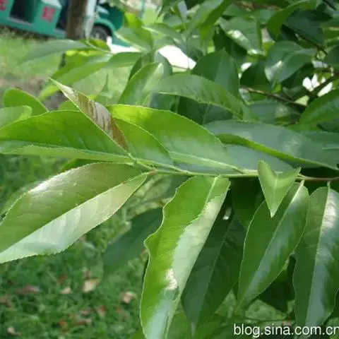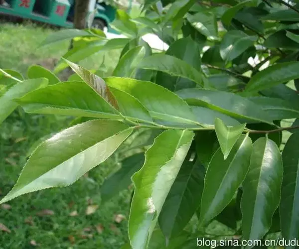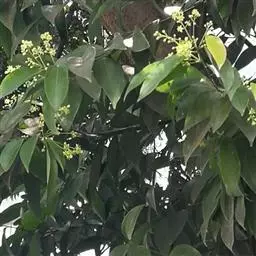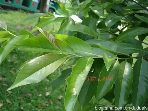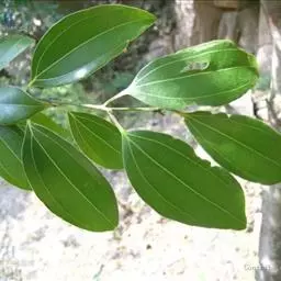 钝叶樟(Cinnamomum bejolghota (Buch.-Ham.) Sweet):又名钝叶桂、假桂皮、土桂皮、青樟木、大叶山桂、香桂楠,樟科樟属小至大乔木,高5-25米,胸径达30厘米;树皮青绿色,有香气。枝条常对生,粗壮, 小枝圆柱形或钝四棱形,干时红褐色,初时被微柔毛,后变无毛。芽小,卵珠形,芽鳞密被 绢状毛。叶近对生,椭圆状长圆形,长12-30厘米,宽4-9厘米,先端钝、急尖或渐尖,基部近圆形或渐狭,硬革质,上面绿色,光亮,下面淡绿或黄绿色,多少带白色,两面极无毛,三出脉或离基三出脉。花期3-4月,果期5-7月。