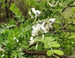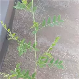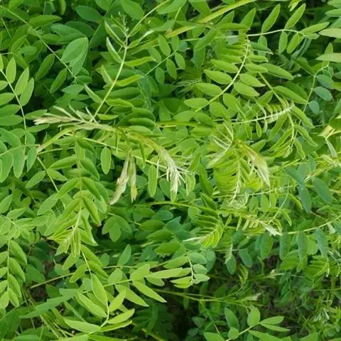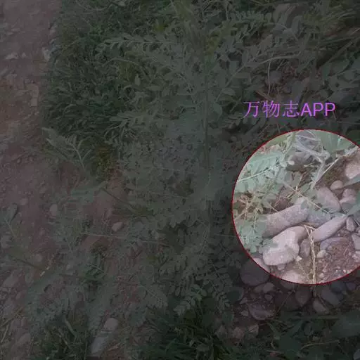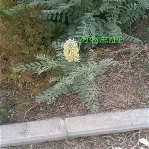 草本,或基部木质化成亚灌木状,高约1米。枝被白色或淡灰白色长柔毛或贴伏柔毛。羽状复叶;叶柄长1-2厘米;托叶着生于小叶柄的侧面,钻状,长约5毫米,常早落;小叶7-13对,对生或近互生,纸质,披针状长圆形或椭圆状长圆形,长15-30毫米,宽约10毫米,先端钝圆或急尖,常具小尖头,基部宽楔形或圆形,上面被疏柔毛,下面毛被较密,中脉上面常凹陷,下面隆起,侧脉不明显。