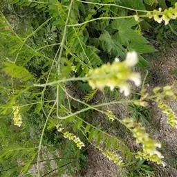 荚果串珠状,长8-13厘米,直,具多数种子;种子卵球形,稍扁,褐色或黄褐色。花期5-6月,果期8-10月。