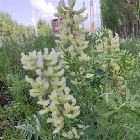 苦豆子(学名:Sophora alopecuroides L.)是豆科,槐属草本或基部木质化成亚灌木状植物,高可达1米。羽状复叶;托叶着生于小叶柄的侧面,钻状,小叶对生或近互生,纸质,叶片披针状长圆形或椭圆状长圆形,侧脉不明显。总状花序顶生;花多数,密生;苞片似托叶,脱落;花萼斜钟状,花冠白色或淡黄色,旗瓣形状多变,翼瓣常单侧生,龙骨瓣与翼瓣相似,先端明显具突尖,背部明显呈龙骨状盖叠,柄纤细,花丝不同程度连合,柱头圆点状,荚果串珠状,种子卵球形,稍扁,5-6月开花,8-10月结果。
