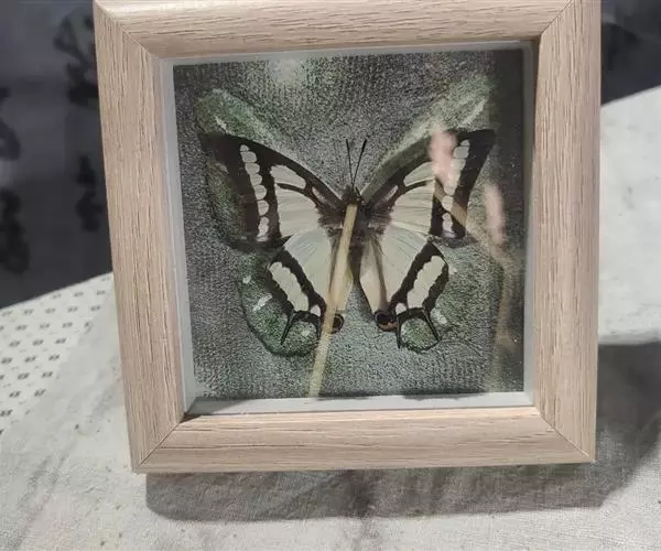 翅淡绿色,前后翅外缘有黑色宽带,前翅黑带中有淡绿色斑列,后翅黑带间为淡绿色带。后翅两尾呈剪形突出,黑褐色,二尾蛱蝶前后翅斑纹酷似我国古代军事上常用的弓箭图形,又称为“弓箭蝶”。