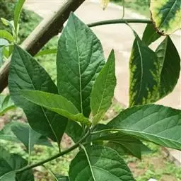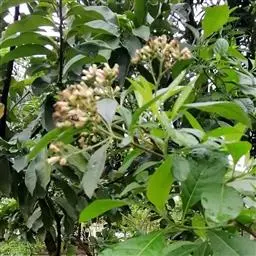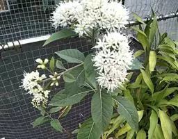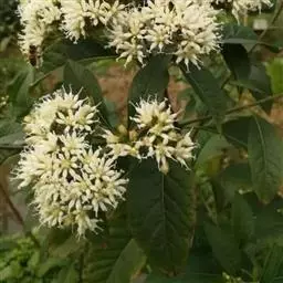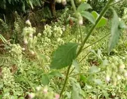 扁桃斑鸠菊(学名:Vernonia amygdalina Del.):是一种2-5米的灌木或小乔木,树皮粗糙。叶绿色椭圆形,长达20厘米。头状花序中等大,排列成伞房状或总状,数个密集,具同型的两性花,花多数。瘦果圆柱状或陀螺状,具棱或具肋,顶端截形,基部常具胼胝质,被短毛,常具腺;冠毛通常2层,稀1层,内层细长,糙毛状,脱落或宿存,外层极短,刚毛状。