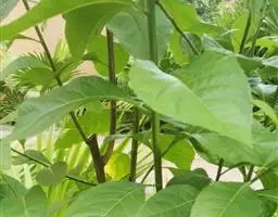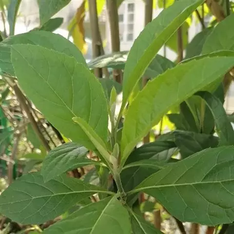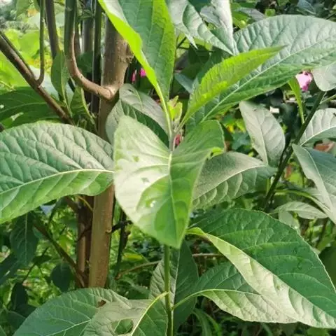扁桃斑鸠菊 扁桃斑鸠菊是一种2-5米的灌木或小乔木,树皮粗糙。叶绿色椭圆形,长达20厘米,互生,大而宽,顶部尖。不下延。通常具柄,叶柄直径约6毫米,全缘,稀具近基三出脉两面或下面常具腺。