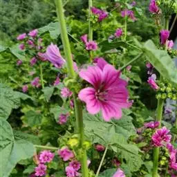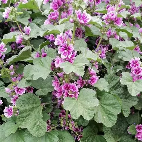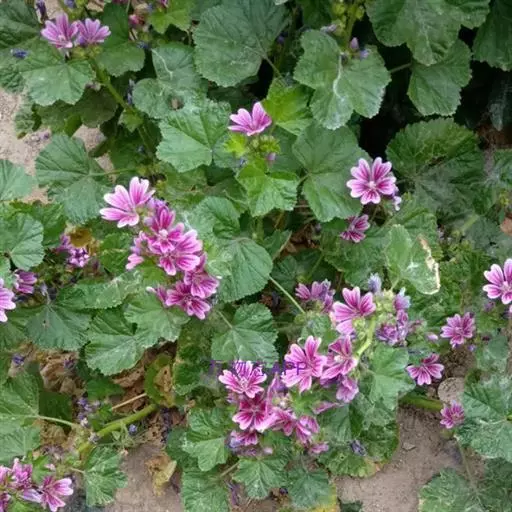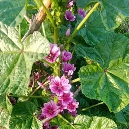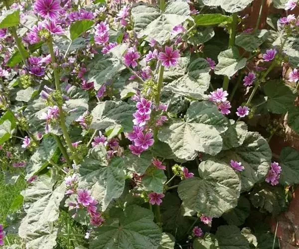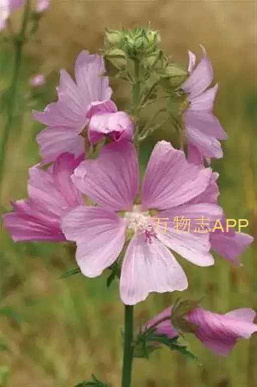 锦葵(学名:Malva sinensis Cavan.):二年生或多年生直立草本,高50-90厘米,分枝多,疏被粗毛。叶圆心形或肾形,具5-7圆齿状钝裂片,两面均无毛或仅脉上疏被短糙伏毛。花3-11朵簇生,小苞片3,长圆形疏被柔毛;花紫红色或白色,直径3.5-4厘米,花瓣5,匙形,长2厘米,先端微缺,爪具髯毛。果扁圆形,分果爿9-11,肾形,被柔毛;种子黑褐色,肾形,长2毫米。花期5-10月。