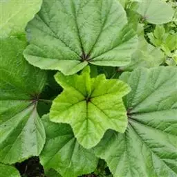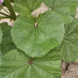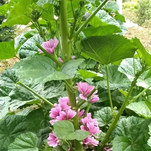 锦葵是二年生或多年生直立草本植物,高50-90厘米,分枝多,疏被粗毛。叶圆心形或肾形,具5-7圆齿状钝裂片,长5-12厘米,宽几相等,基部近心形至圆形,边缘具圆锯齿,两面均无毛或仅脉上疏被短糙伏毛;叶柄长4-8厘米,近无毛,但上面槽内被长硬毛;托叶偏斜,卵形,具锯齿,先端渐尖。