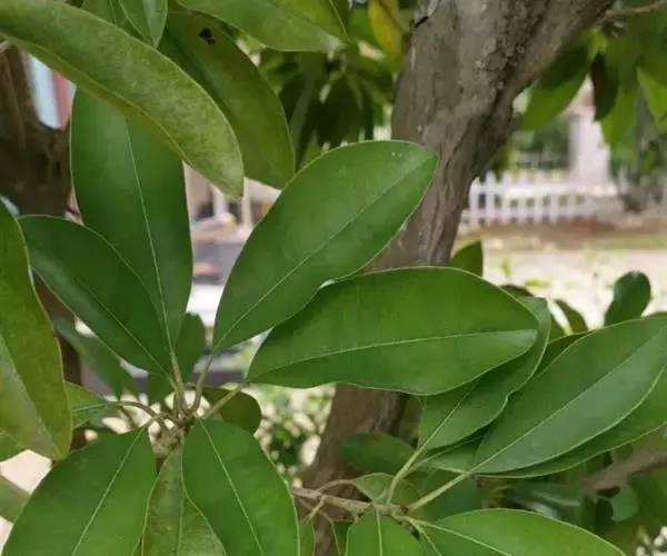 乔木,高15-20米(栽培者常较矮,且常呈灌木状),小枝茶褐色,具明显的叶痕。叶互生,密聚于枝顶,革质,长圆形或卵状椭圆形,长6-19厘米,宽2.5-4厘米,先端急尖或钝,基部楔形,全缘或稀微波状,两面无毛,具光泽,中脉在上面凹入,下面很凸起,侧脉纤细,多且相互平行,网脉极细密,两面均不明显;叶柄长1.5-3厘米。