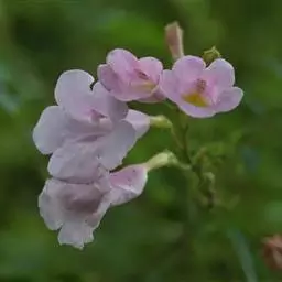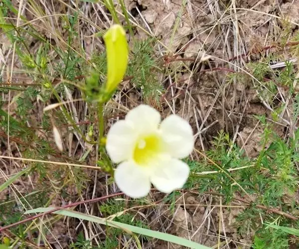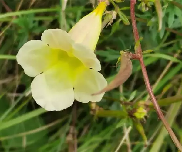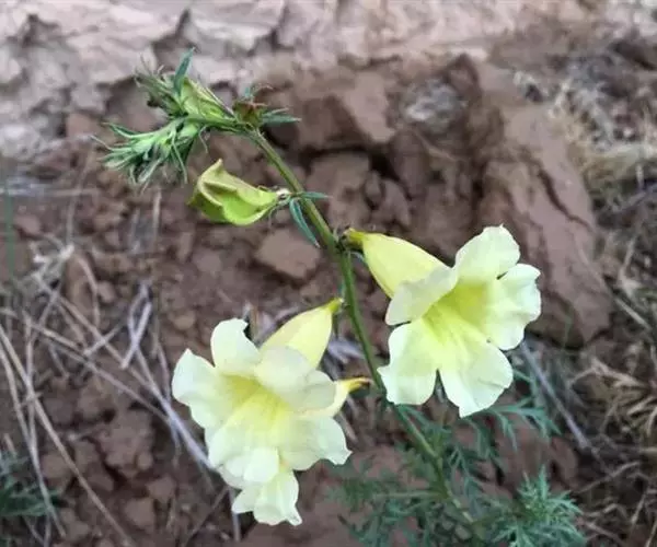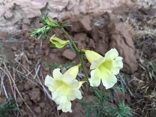 黄花角蒿(变种)为紫葳科年生至多年生草本植物,具分枝的茎,高达80厘米,根近木质而分枝。生于海拔2000-2600米山坡。高山花卉,花淡黄色,钟状漏斗形,具有较好的观赏性。此外,同属植物黄波罗花之别名亦称黄花角蒿。